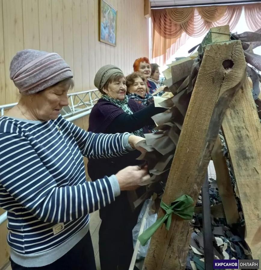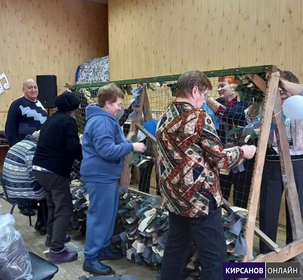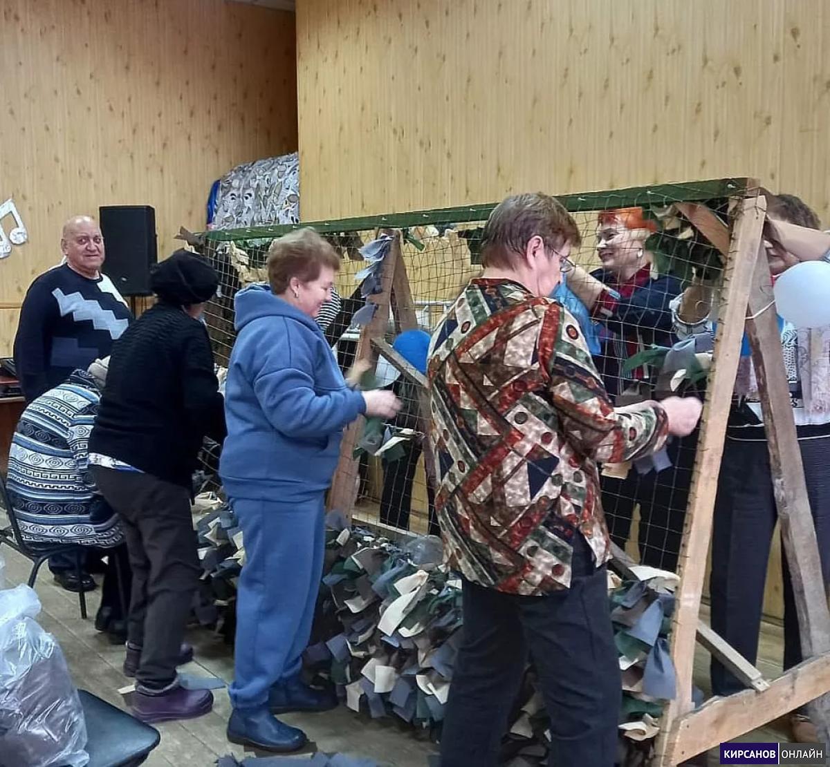 На базе Центра досуга "Золотой витязь" продолжается изготовление маскировочных сетей для наших военнослужащих. В этой работе принимают участие разные поколения кирсановцев, в том числе члены Совета ветеранов города Кирсанова.