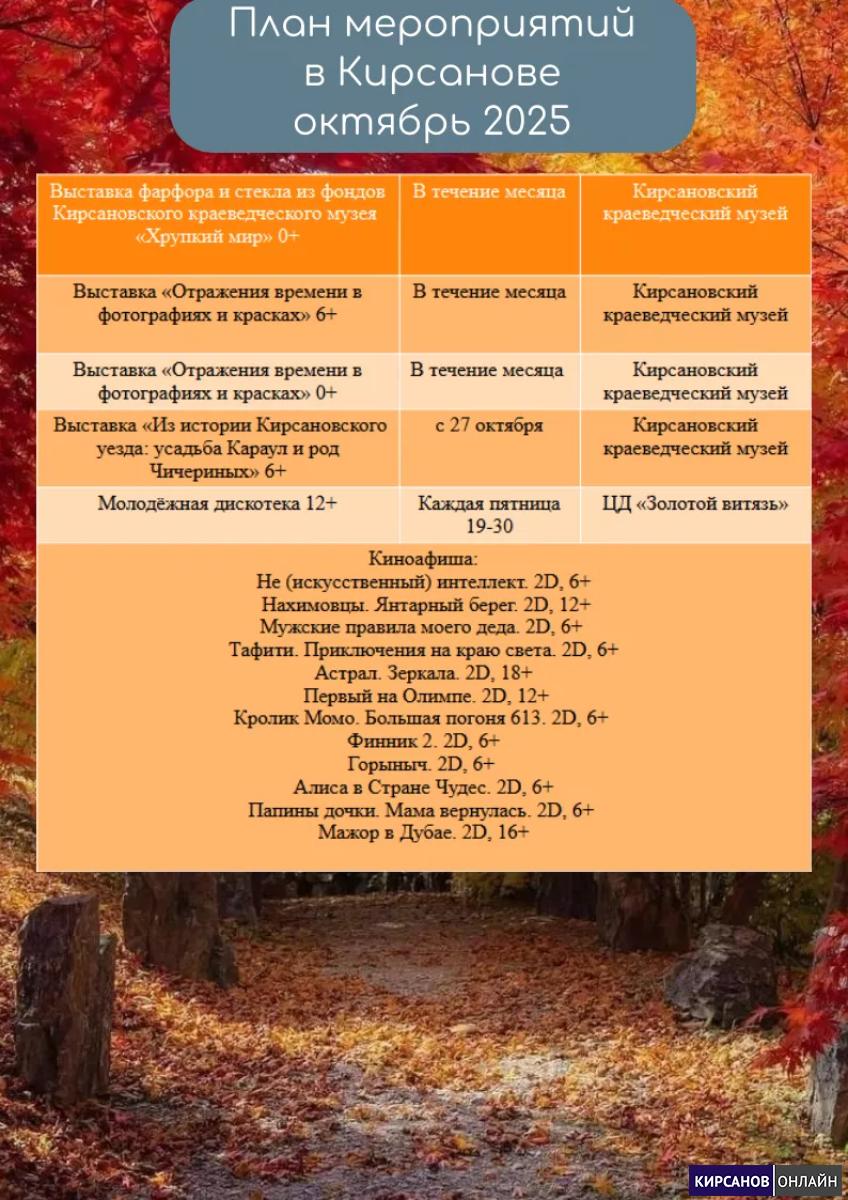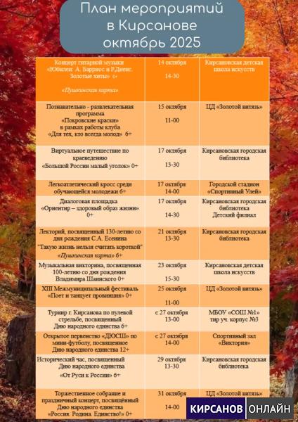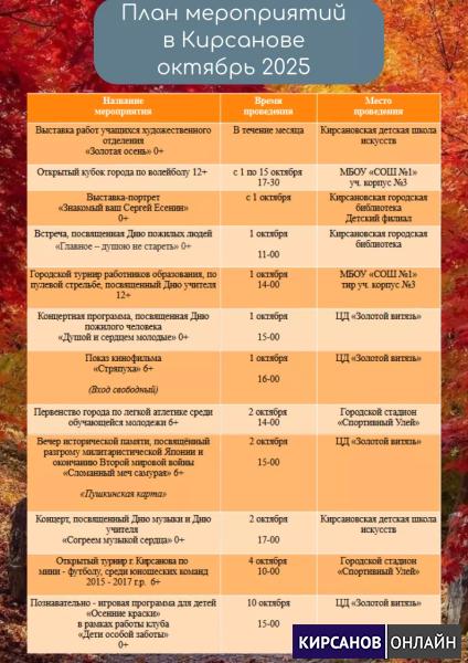 План мероприятий в Кирсанове на октябрь 2025
