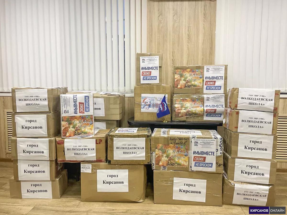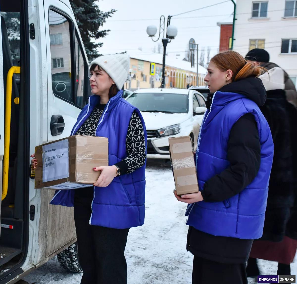 В преддверии новогодних праздников кирсановцы отправили в Волкодаевскую школу гуманитарный груз. В него вошли карнавальные костюмы, новогоднее оформление, подарки, сладкие подарки, а также наглядные и методические пособия, необходимые для организации учебного процесса и проведения внеклассных мероприятий.