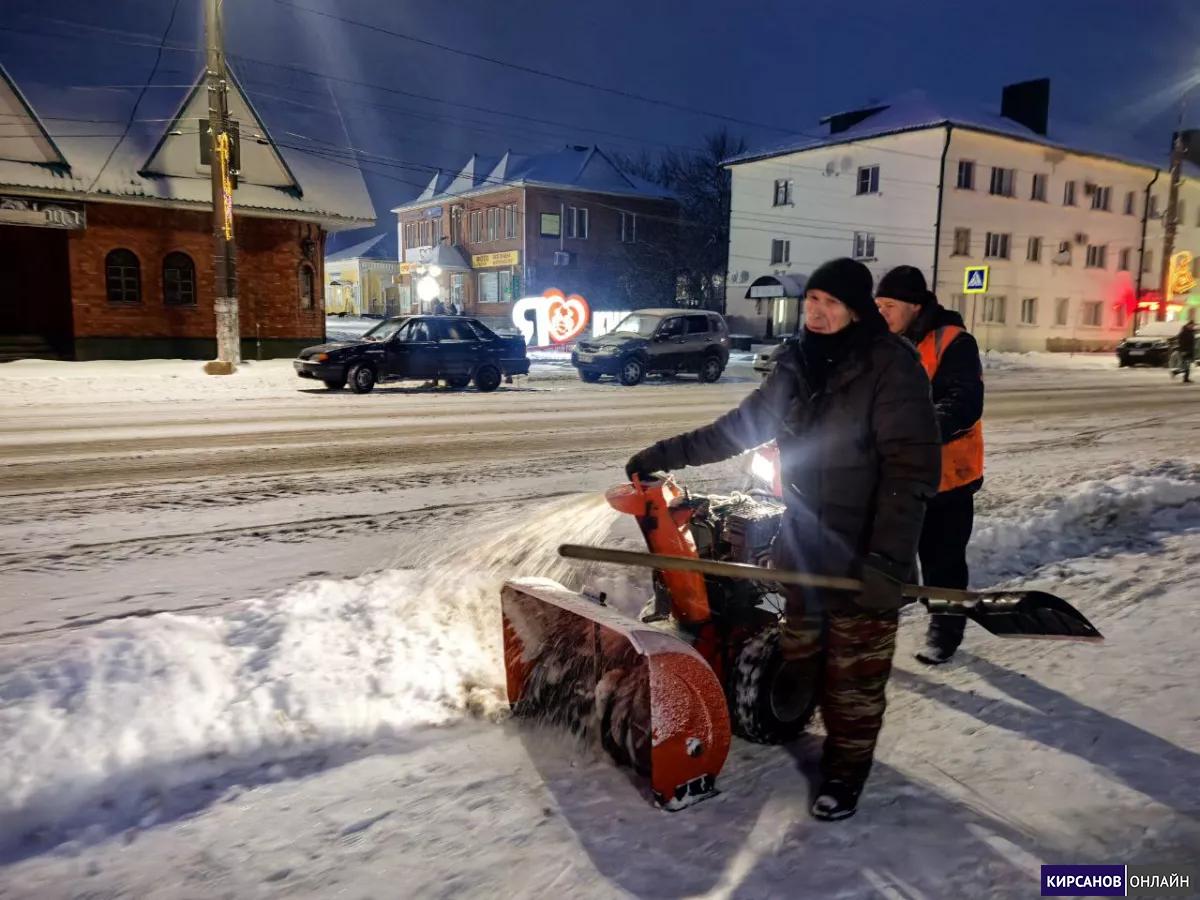 Ночной снегопад добавил работы коммунальным службам. Весь имеющийся персонал и спецтехника задействованы в уборке города.