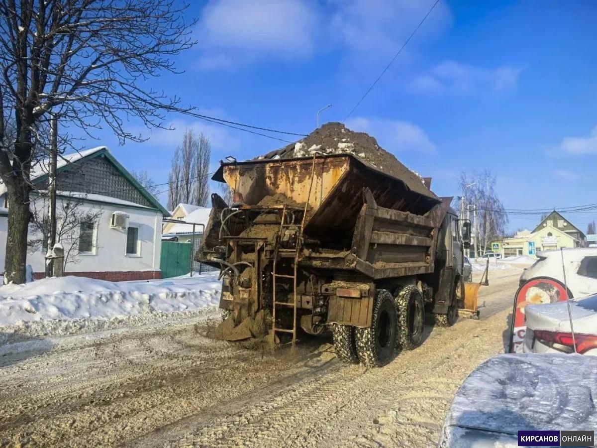 Коммунальные службы продолжают уборку города Кирсанова от снега. Ведутся работы по расчистке проезжих частей, тротуаров, парковок и заездных карманов. Спецтехника в количестве 7 единиц задействована на улицах города. Для обеспечения безопасного проезда автогрейдер расширяет проезжие части. Параллельно с этим дорожное полотно обрабатывается пескосоляной смесью.